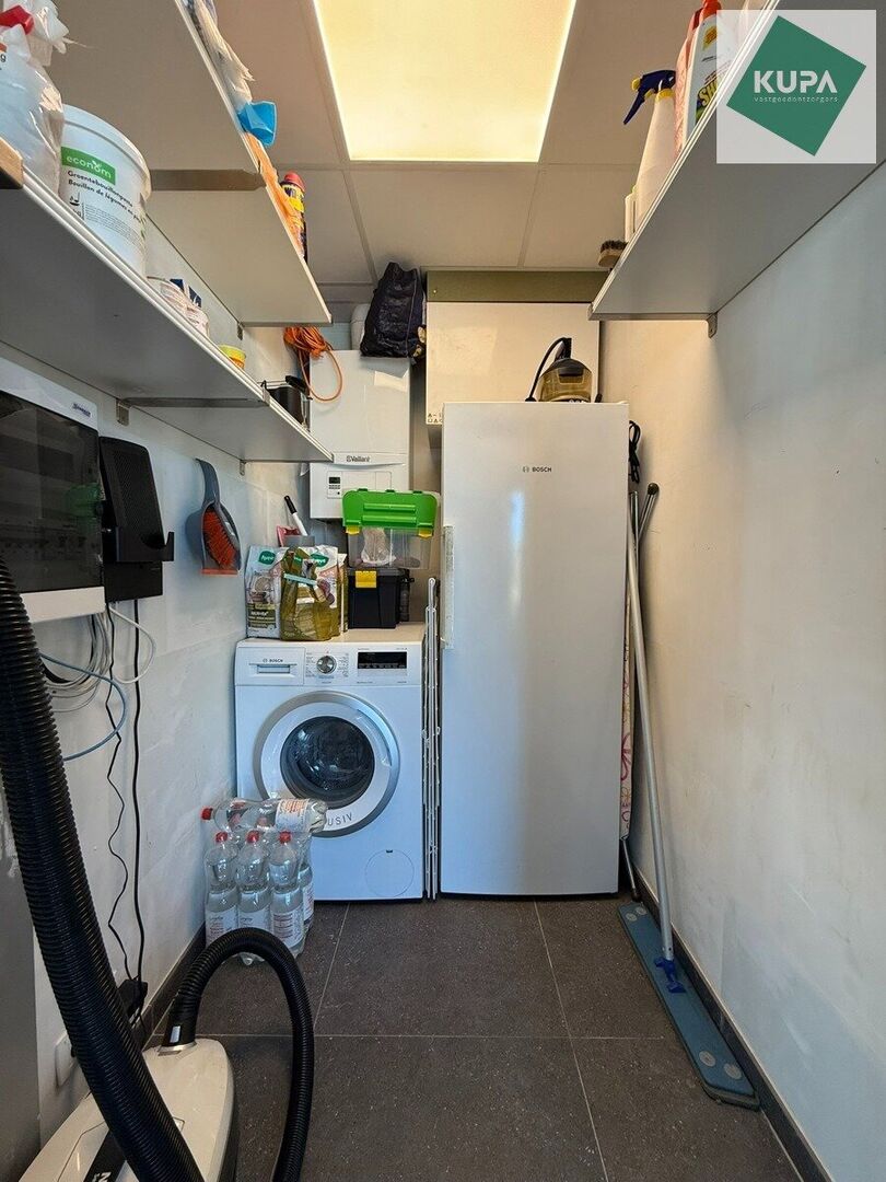 De slaapkamer is ruim en sluit rechtstreeks aan op de badkamer. Daarnaast is er een praktische berging met aansluitingen voor wasmachine en droogkast, en extra bergruimte.