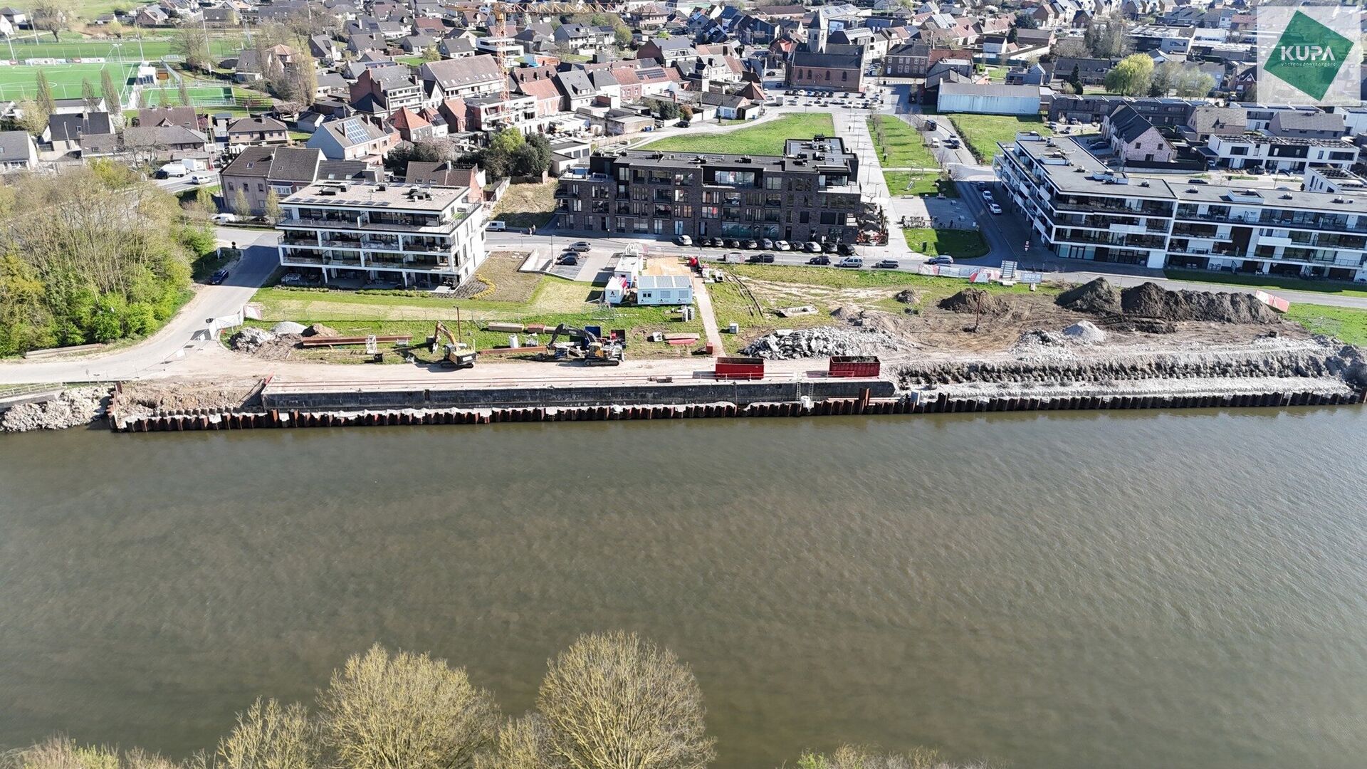 Het appartement omvat een inkomhal met apart toilet, een grote leefruimte met volledig uitgeruste open keuken en een prachtig uitzicht op het water. Aansluitend aan de leefruimte bevindt zich een terras van 12m², noordoost gericht, waar je in alle rust kan genieten van de omgeving en het zicht op de Leie.