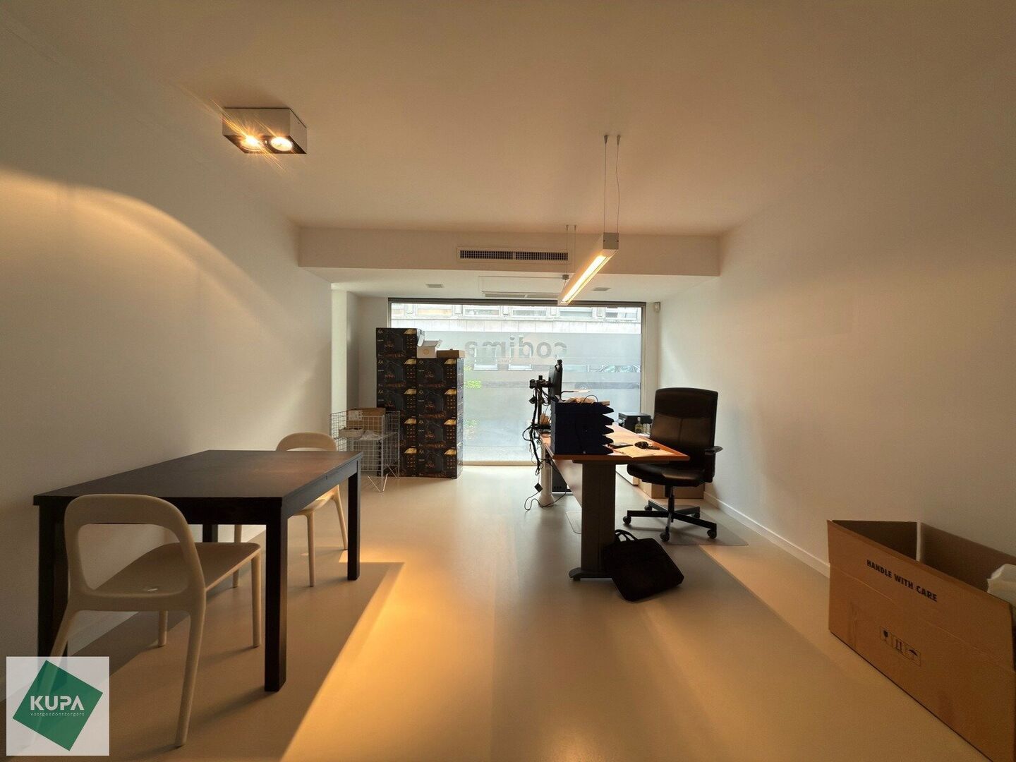 De winkel werd in 2009 grondig gerenoveerd en bestaat uit één grote open winkelruimte met aansluitend een achterliggende kantoorruimte en werkplaats. Het pand is voorzien van alle moderne comfort: een epoxyvloer, kitchenette, toilet, en een warmtepomp die zowel koeling als verwarming verzekert. Voor extra veiligheid zijn de grote raampartijen uitgerust met automatische rolluiken.