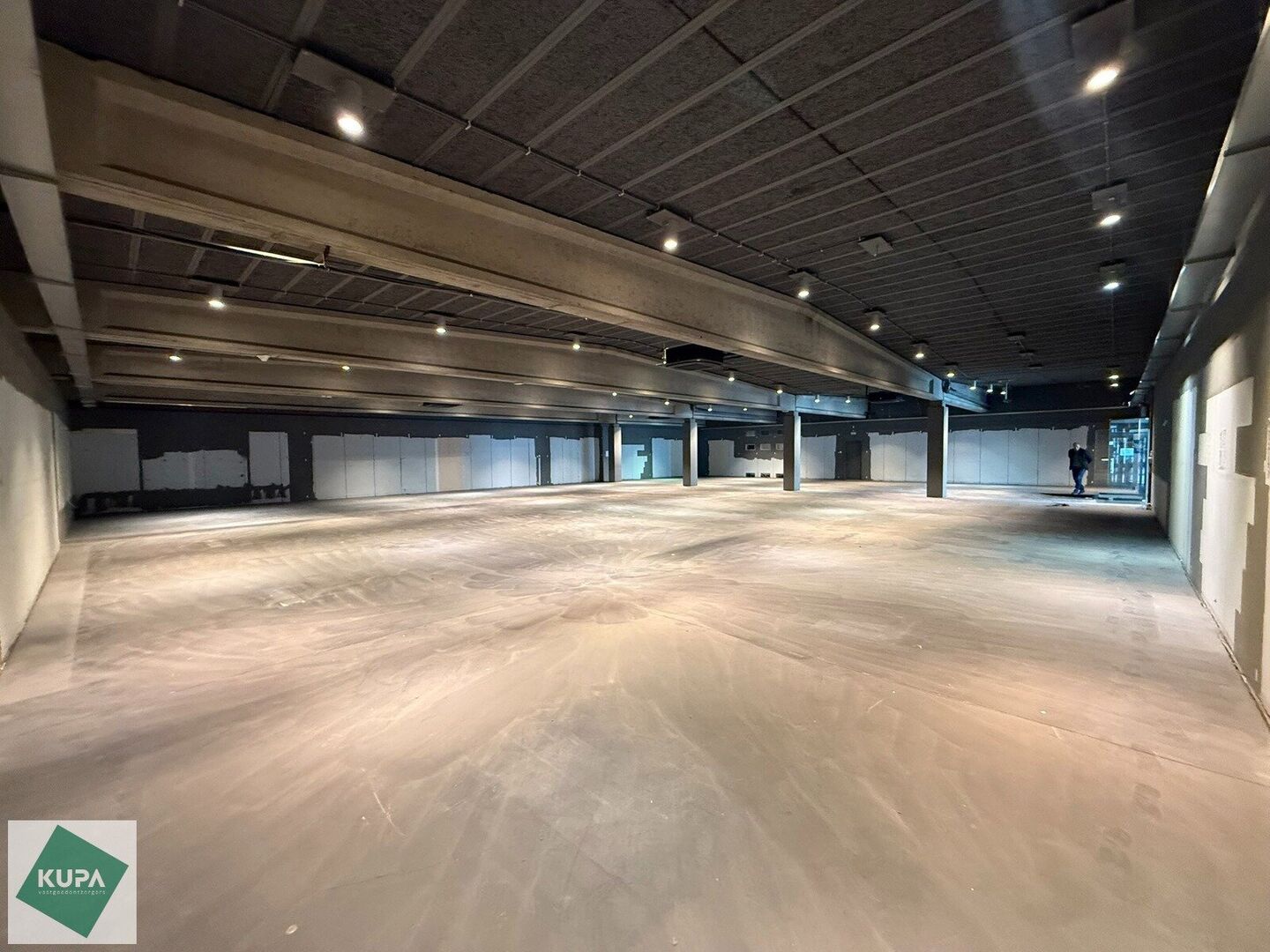Bij het betreden van de winkel kom je binnen in een ruime inkomhal die meteen een open en professionele indruk geeft. De aansluitende landscape-ruimte biedt een groot, flexibel in te delen oppervlak, afgewerkt met een strakke polybetonvloer en voorzien van kwalitatieve verlichting