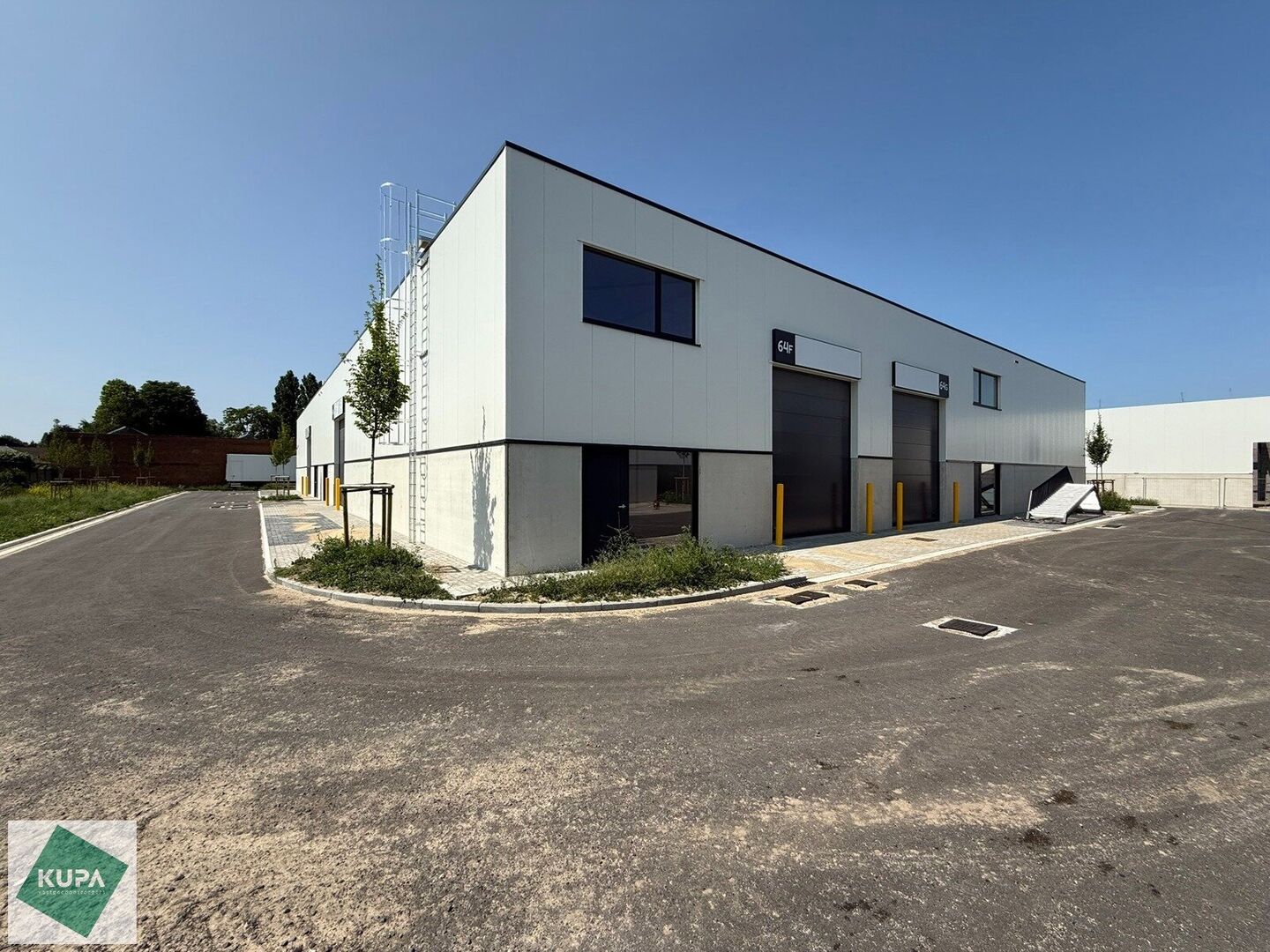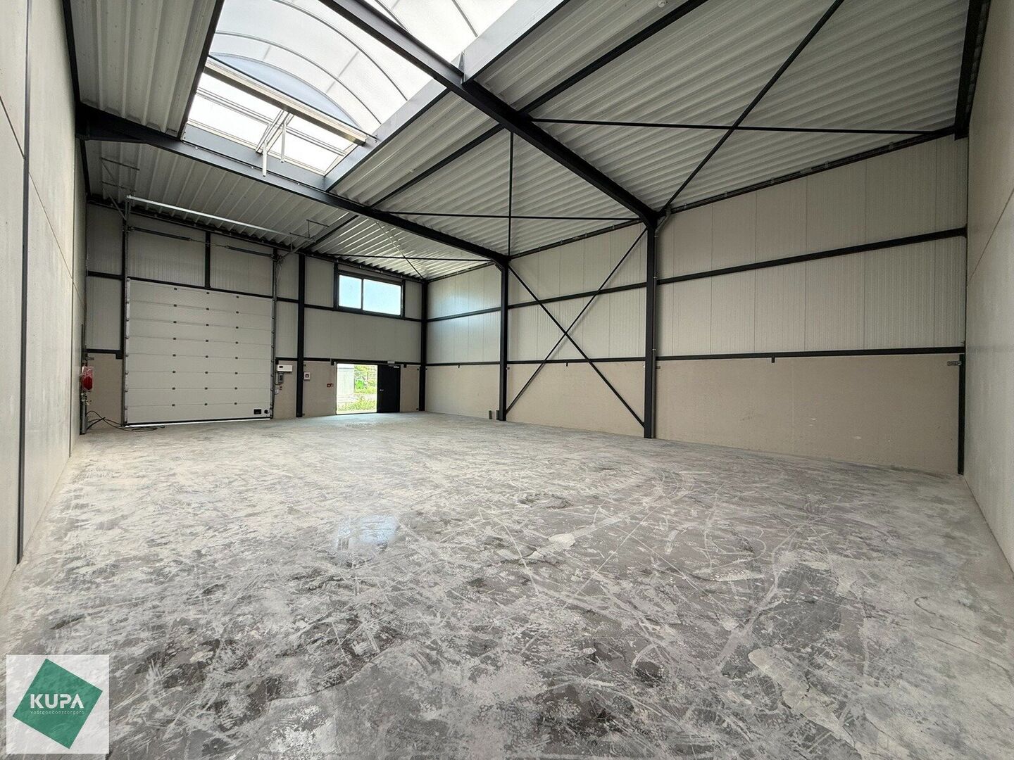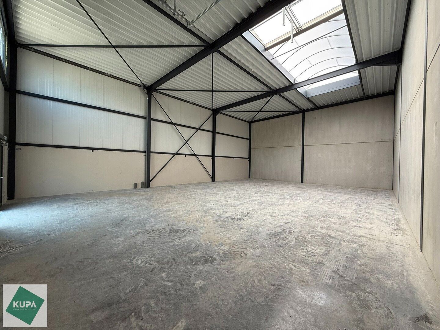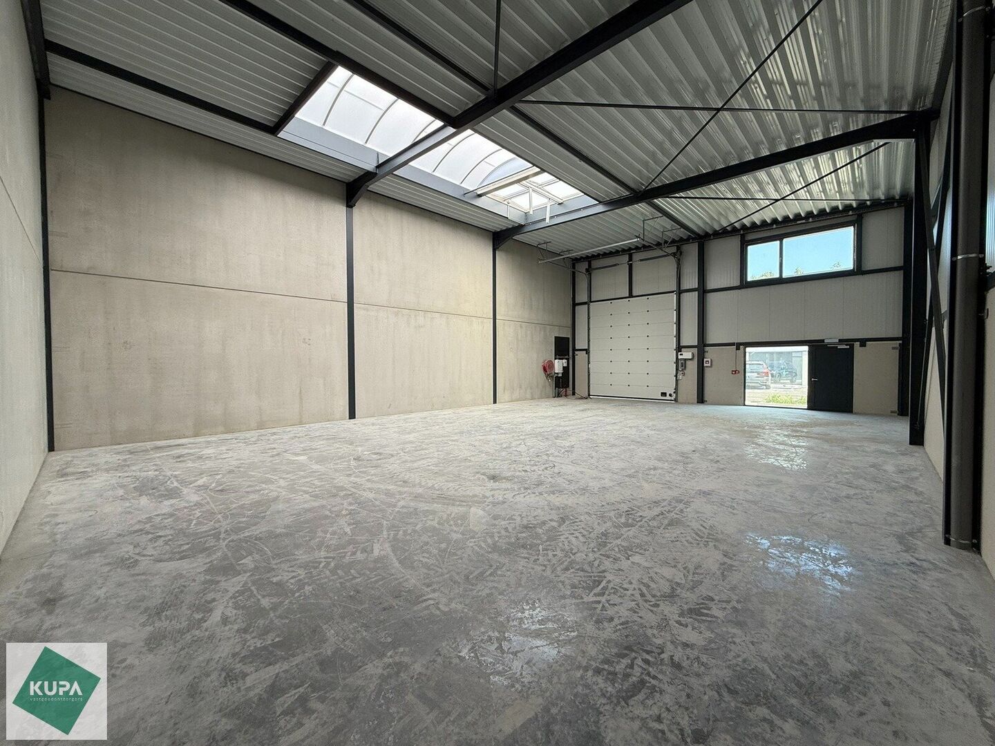 De KMO-unit is kwalitatief afgewerkt en opgebouwd uit een staalstructuur met betonnen plint en geïsoleerde sandwichpanelen. Dankzij de grote raampartijen geniet het magazijn van veel natuurlijk daglicht, wat bovendien de mogelijkheid biedt om een kantoorruimte te integreren. Verder is het magazijn uitgerust met een automatische sectionale poort, een steeldeckdak met lichtstraat en rookluik + brandhaspel, en een duurzame polybetonvloer met een draagkracht van 2,5 ton/m². De vrije hoogte bedraagt meer dan 6 meter.