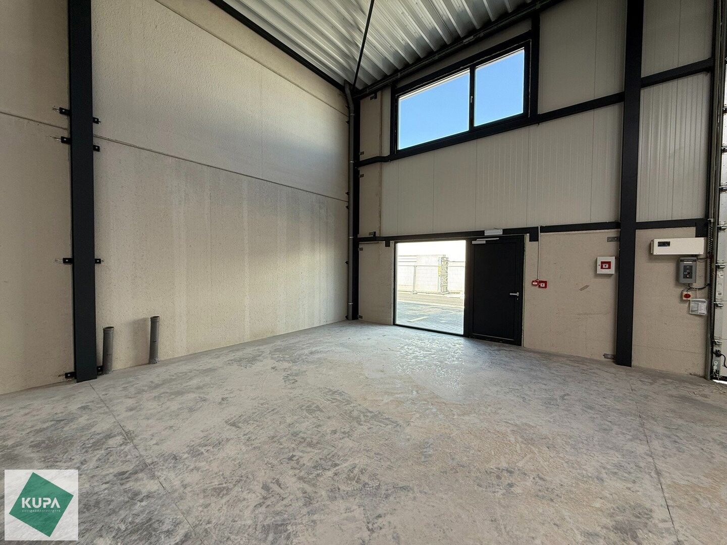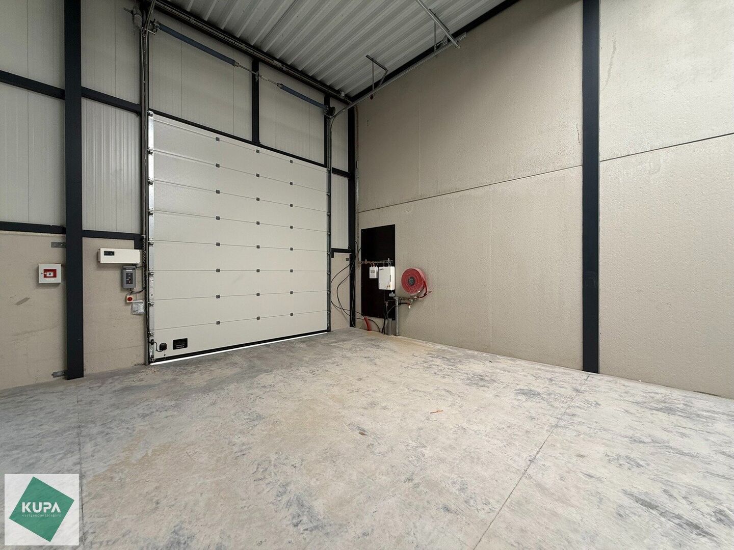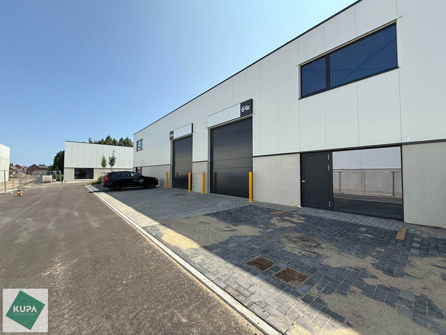 De KMO-unit is kwalitatief afgewerkt en opgebouwd uit een staalstructuur met betonnen plint en geïsoleerde sandwichpanelen. Dankzij de grote raampartijen geniet het magazijn van veel natuurlijk daglicht, wat bovendien de mogelijkheid biedt om een kantoorruimte te integreren. Verder is het magazijn uitgerust met een automatische sectionale poort, een steeldeckdak met lichtstraat en rookluik + brandhaspel, en een duurzame polybetonvloer met een draagkracht van 2,5 ton/m². De vrije hoogte bedraagt meer dan 6 meter.