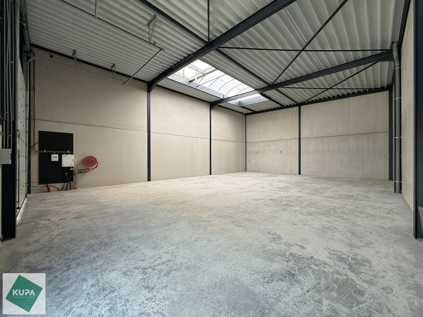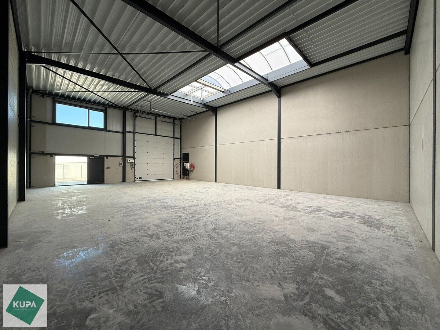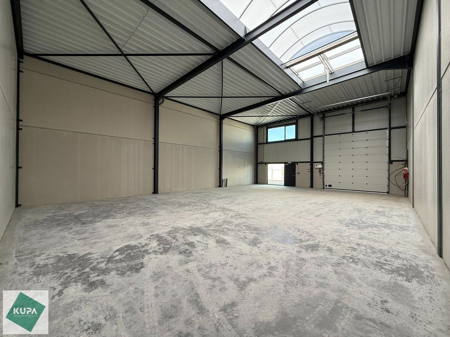 De KMO-unit is kwalitatief afgewerkt en opgebouwd uit een staalstructuur met betonnen plint en geïsoleerde sandwichpanelen. Dankzij de grote raampartijen geniet het magazijn van veel natuurlijk daglicht, wat bovendien de mogelijkheid biedt om een kantoorruimte te integreren. Verder is het magazijn uitgerust met een automatische sectionale poort, een steeldeckdak met lichtstraat en rookluik + brandhaspel, en een duurzame polybetonvloer met een draagkracht van 2,5 ton/m². De vrije hoogte bedraagt meer dan 6 meter.