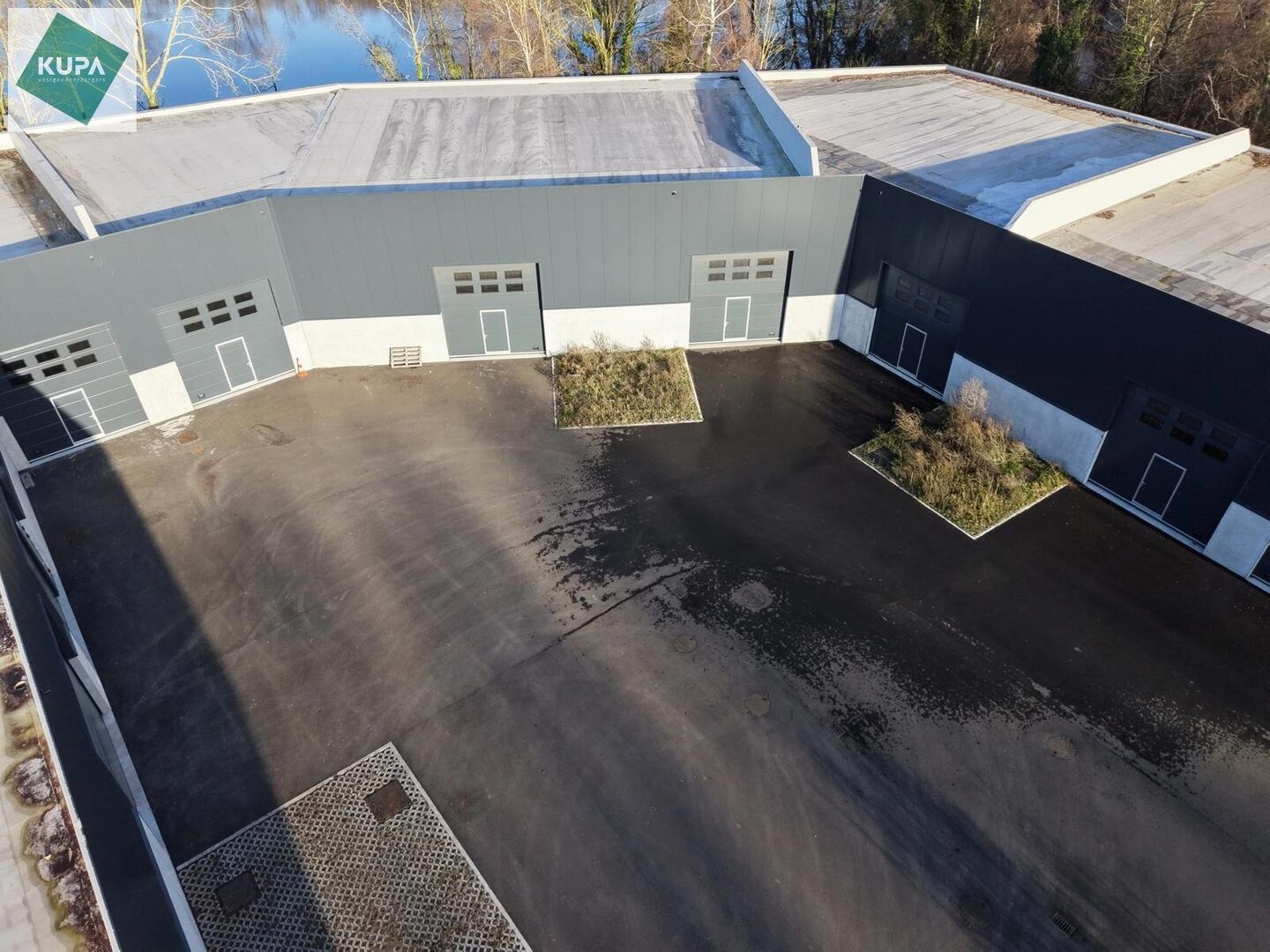 Les entrepôts sont construits comme suit : une hauteur libre de 6 mètres, une structure en acier solide, des murs en béton et des panneaux sandwich isolés. Ils disposent d’une porte sectionnelle automatique (4 m x 4 m) avec porte d’accès séparée et châssis vitré au-dessus de la porte. Les halls sont également équipés d’un sol industriel en polybéton durable, d’un système de détection incendie ainsi que de raccordements individuels pour l’eau, l’électricité et l’internet.
