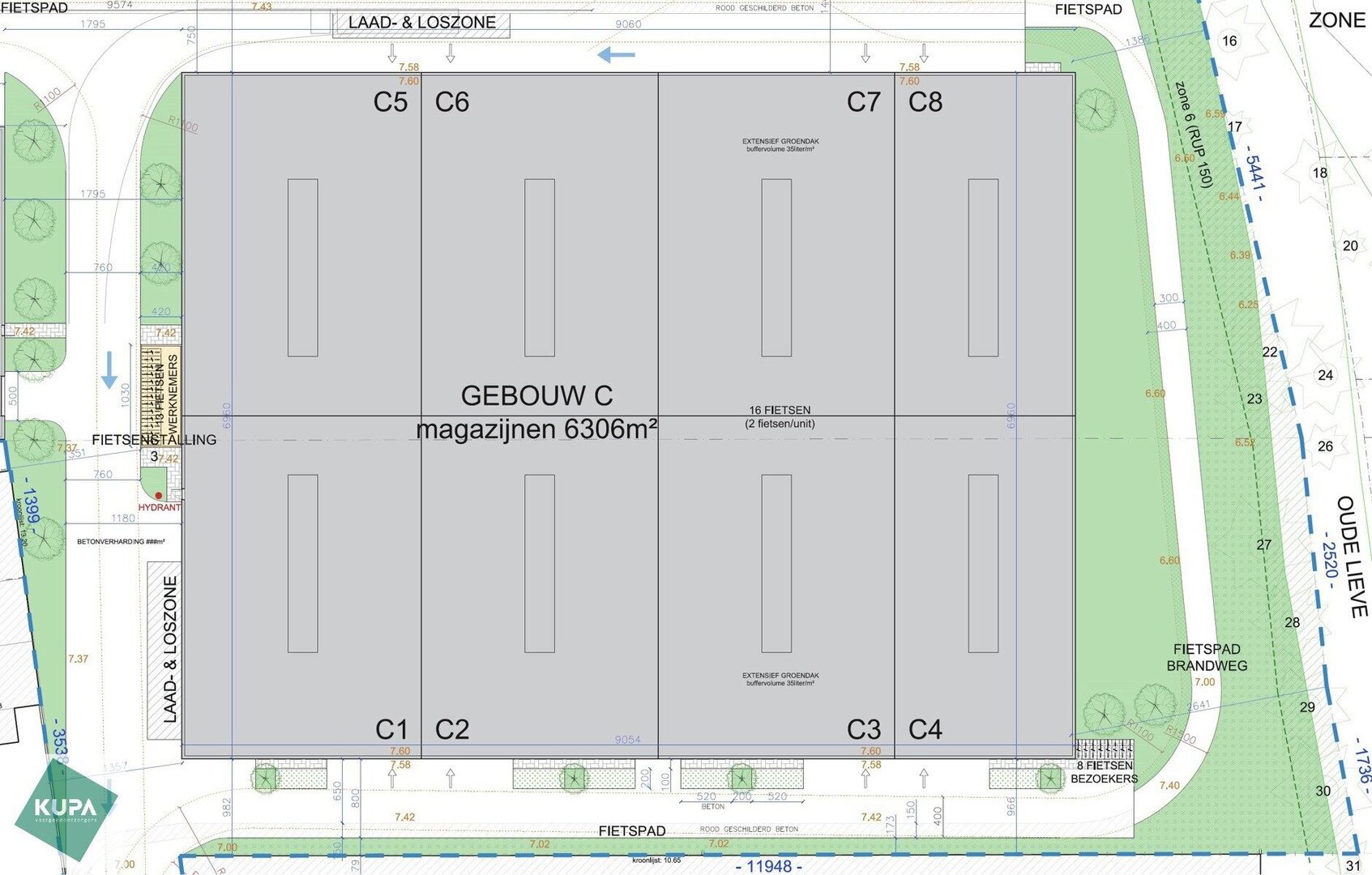 L'unité C4 du bâtiment C couvre 637 m² et est construite dans une structure en acier durable avec des murs en béton et une enveloppe extérieure entièrement isolée. L'unité a une hauteur libre de 7,4 mètres et est livrée en état brut (négociable).