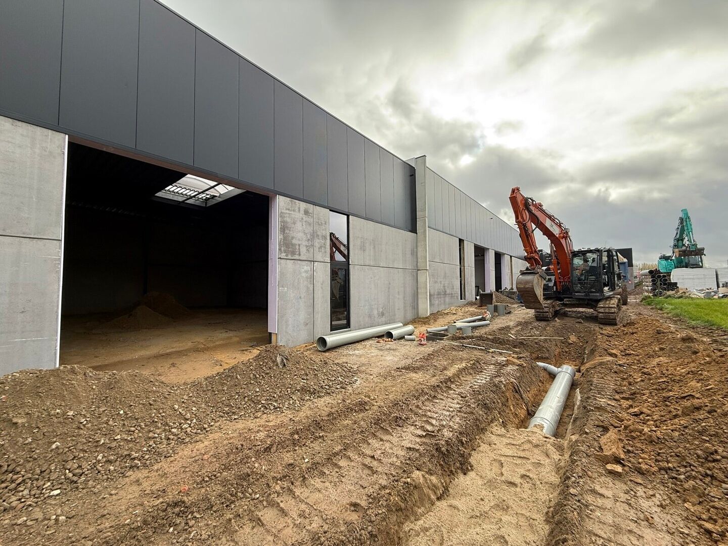 De magazijnen zijn als volgt opgebouwd: een vrije hoogte van 6 meter, met een solide staalstructuur, betonnen wanden en geïsoleerde sandwichpanelen. Er is een automatische sectionale poort (4m x 4m) met aparte toegangsdeur. Daarnaast zijn de loodsen uitgerust met een duurzame polybetonvloer, een lichtstraat met rookluik, branddetectie en individuele aansluitingen voor water, elektriciteit en data.
