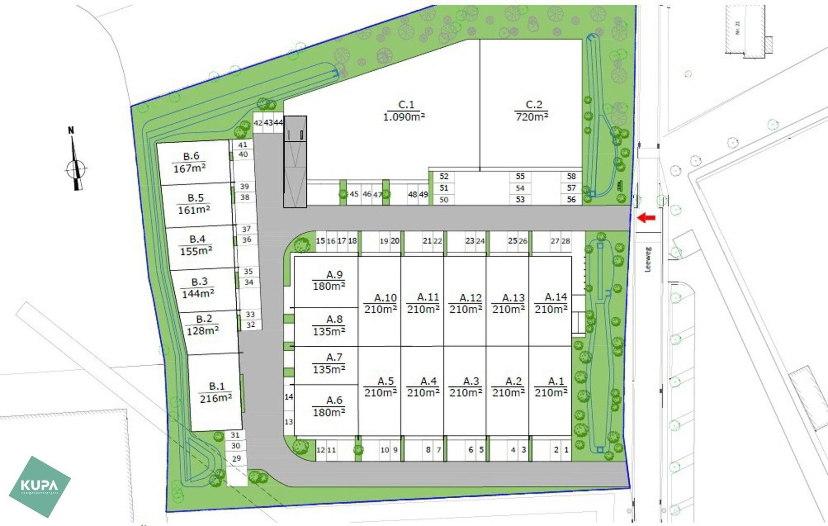 De magazijnen worden opgebouwd in een duurzame staalstructuur met geïsoleerde beton- en sandwichpanelen. Elke unit beschikt over een vrije hoogte van 6 meter, lichtstraat met rookluik, automatische sectionale poort, een afzonderlijke inkomdeur, individuele nutsvoorzieningen en 2 privatieve parkeerplaatsen zijn inbegrepen in de prijs.