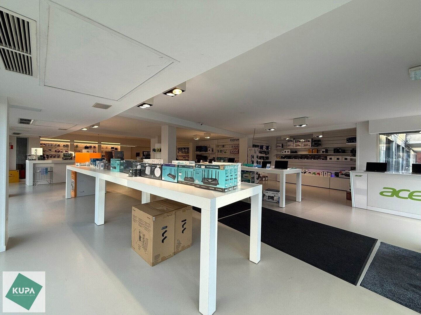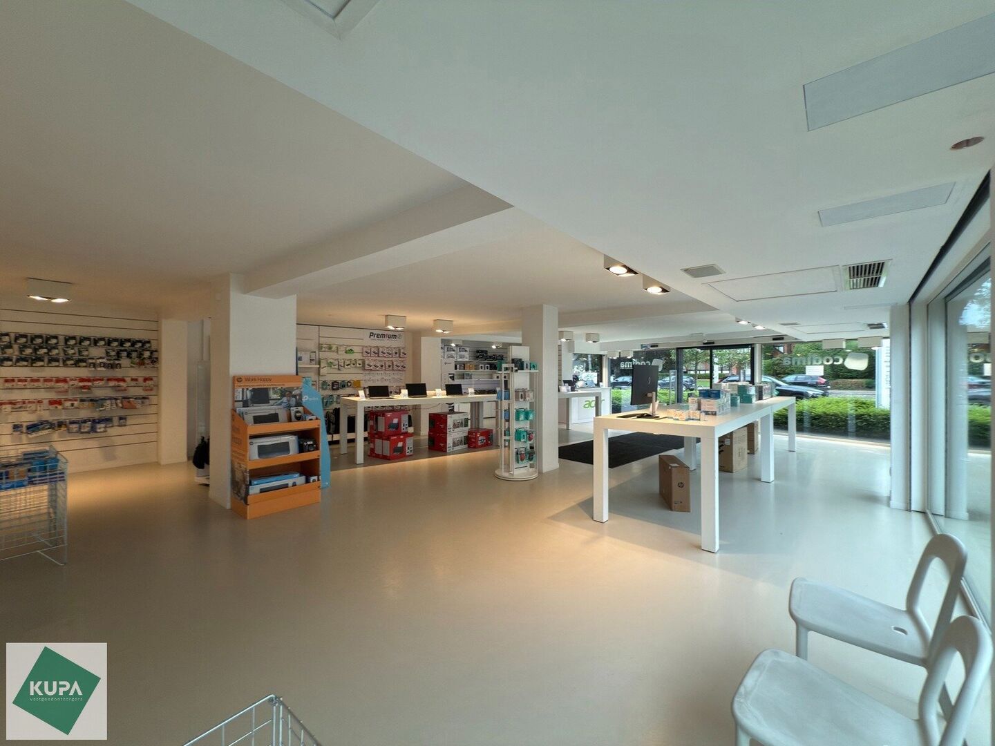 De winkel werd in 2009 grondig gerenoveerd en bestaat uit één grote open winkelruimte met aansluitend een achterliggende kantoorruimte en werkplaats. Het pand is voorzien van alle moderne comfort: een epoxyvloer, kitchenette, toilet, en een warmtepomp die zowel koeling als verwarming verzekert. Voor extra veiligheid zijn de grote raampartijen uitgerust met automatische rolluiken.