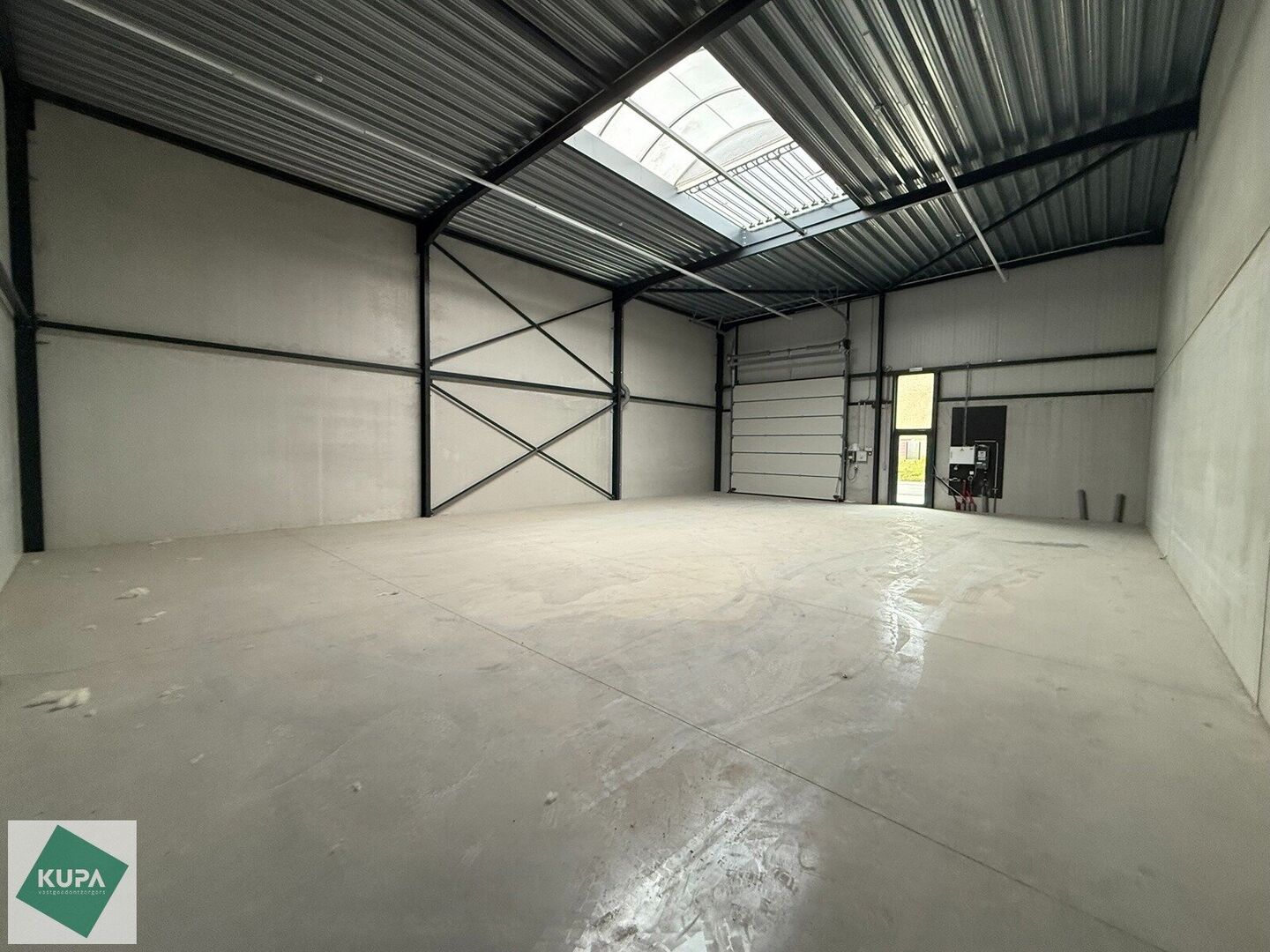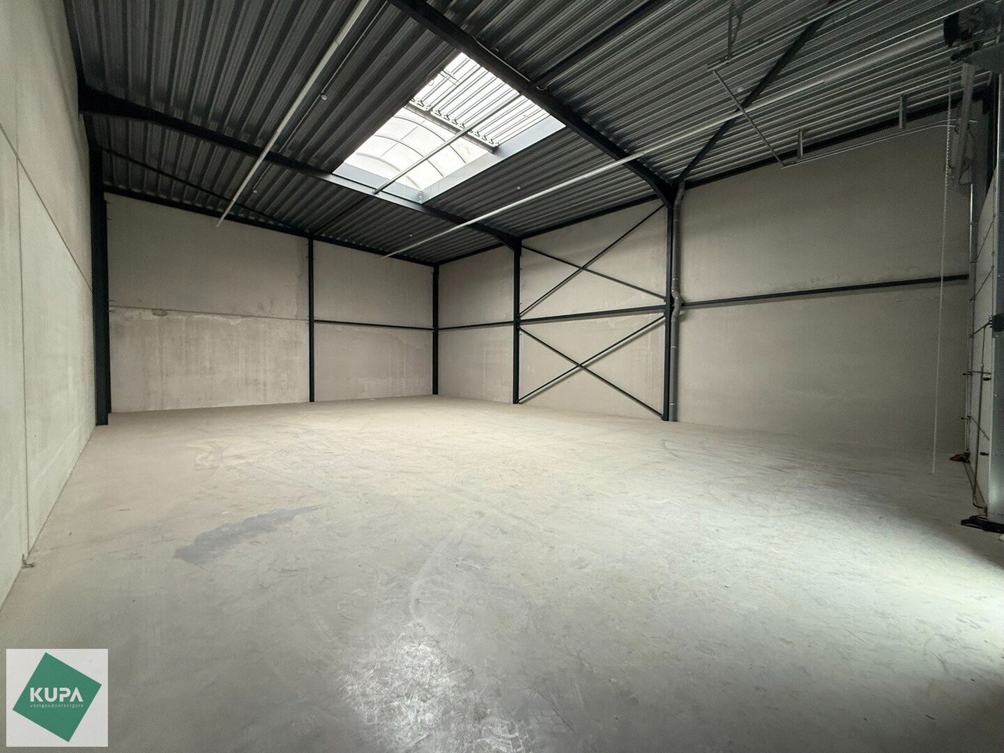 De loods heeft een vrije hoogte van 6 meter en is gebouwd met een solide staalstructuur, betonnen wanden (3 m hoog) en geïsoleerde sandwichpanelen. Er is een automatische sectionale poort (4 m breed x 4 m hoog) met aparte toegangsdeur. Daarnaast zijn de magazijnen uitgerust met een duurzame polybetonvloer, een lichtstraat met rookluik, branddetectie en individuele aansluitingen voor water, elektriciteit (32 A) en data.