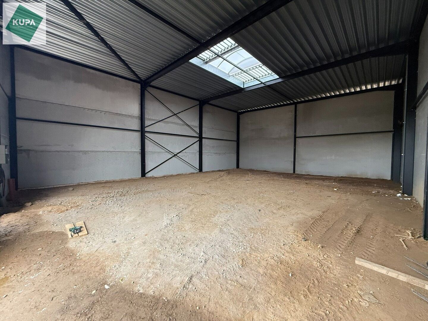 De loods heeft een vrije hoogte van 6 meter en is gebouwd met een solide staalstructuur, betonnen wanden en geïsoleerde sandwichpanelen. Er is een automatische sectionale poort (4m hoog) met aparte toegangsdeur. Daarnaast zijn de magazijnen uitgerust met een duurzame polybetonvloer, een lichtstraat met rookluik, branddetectie en individuele aansluitingen voor water, elektriciteit en data.