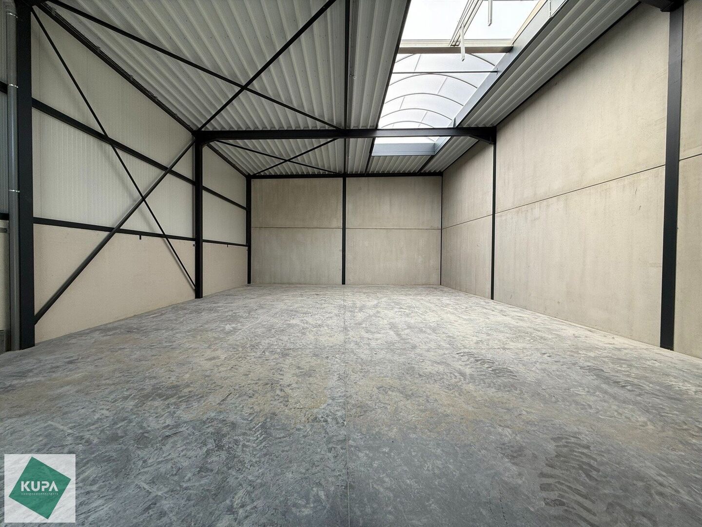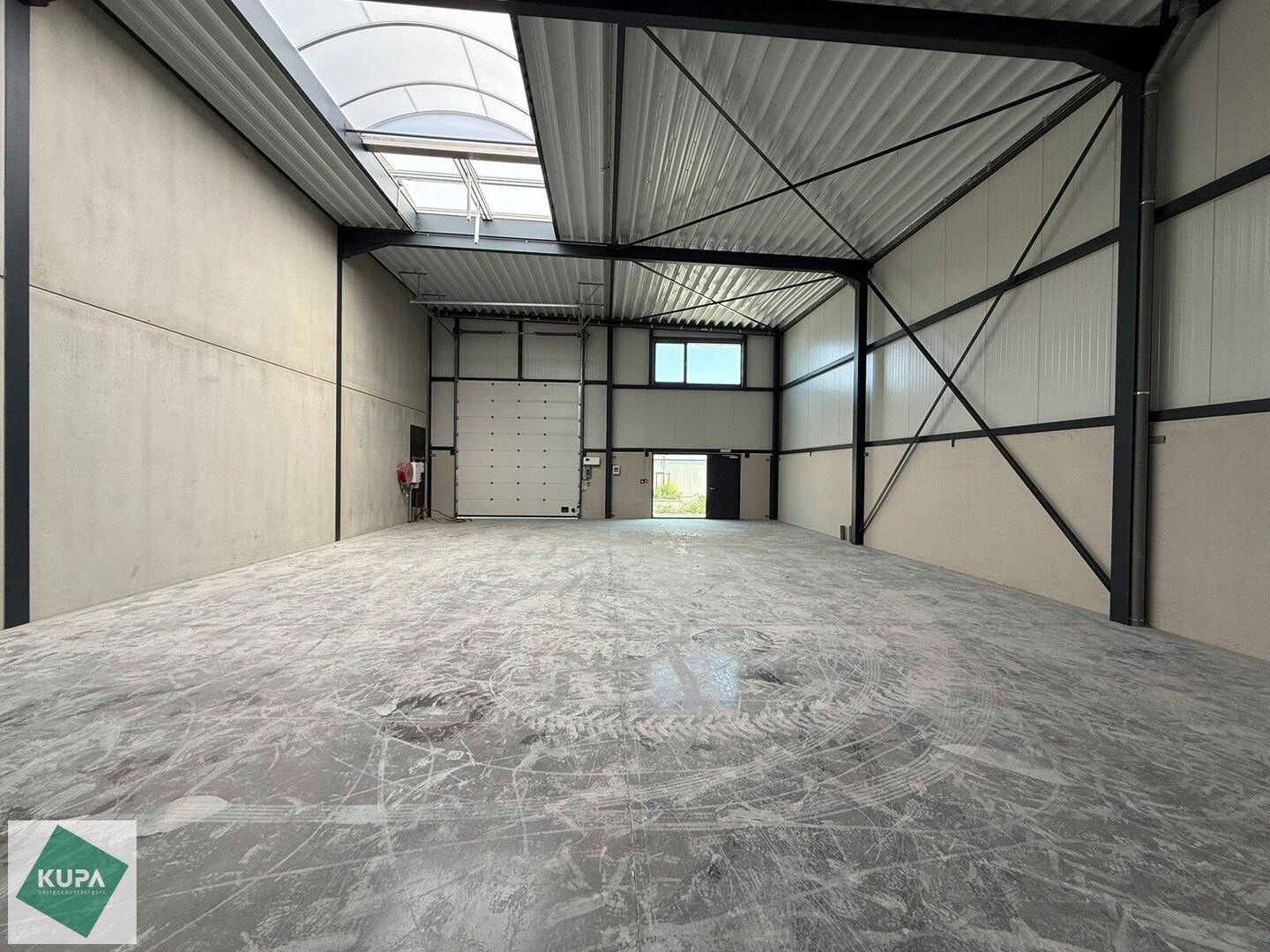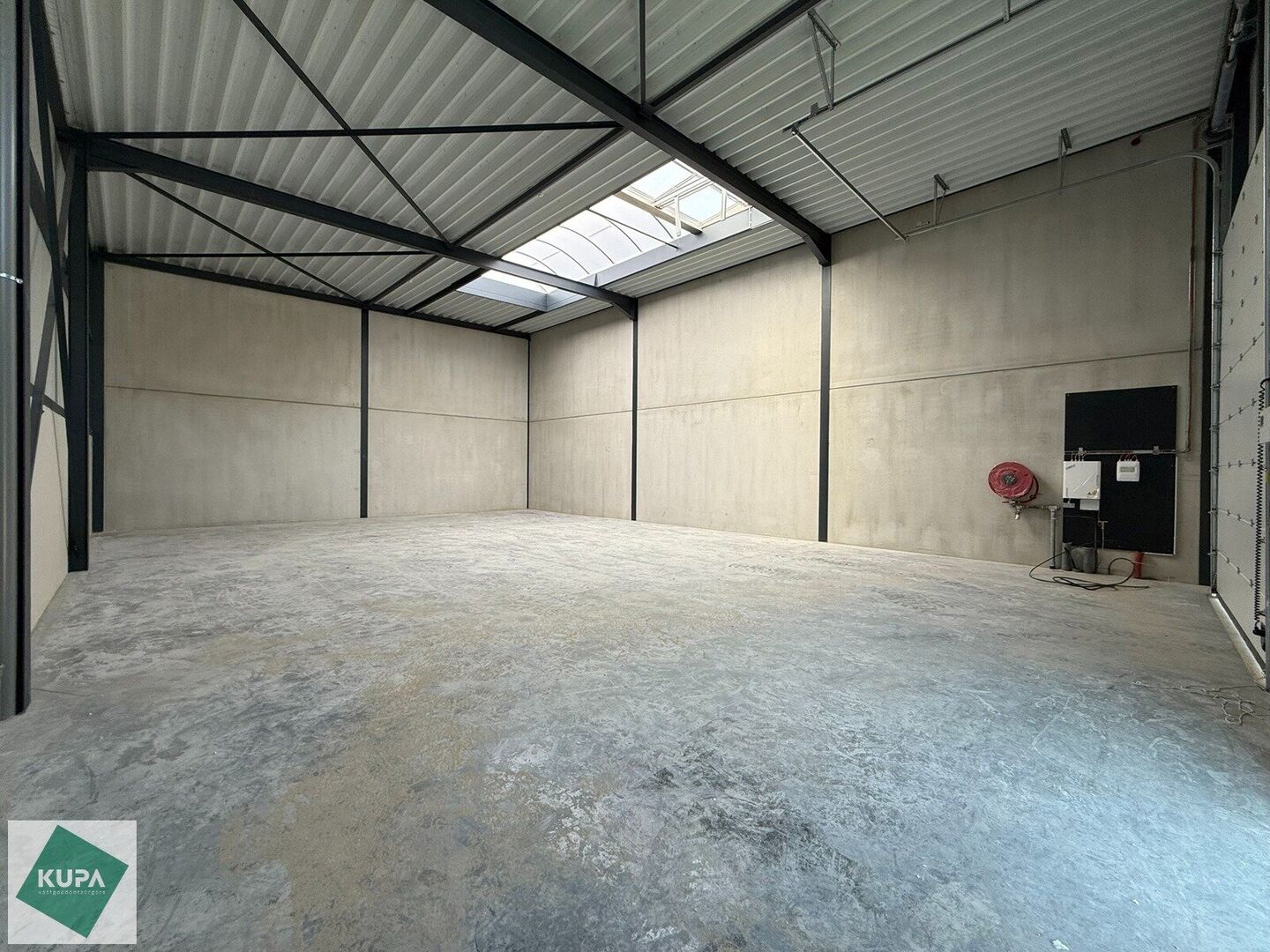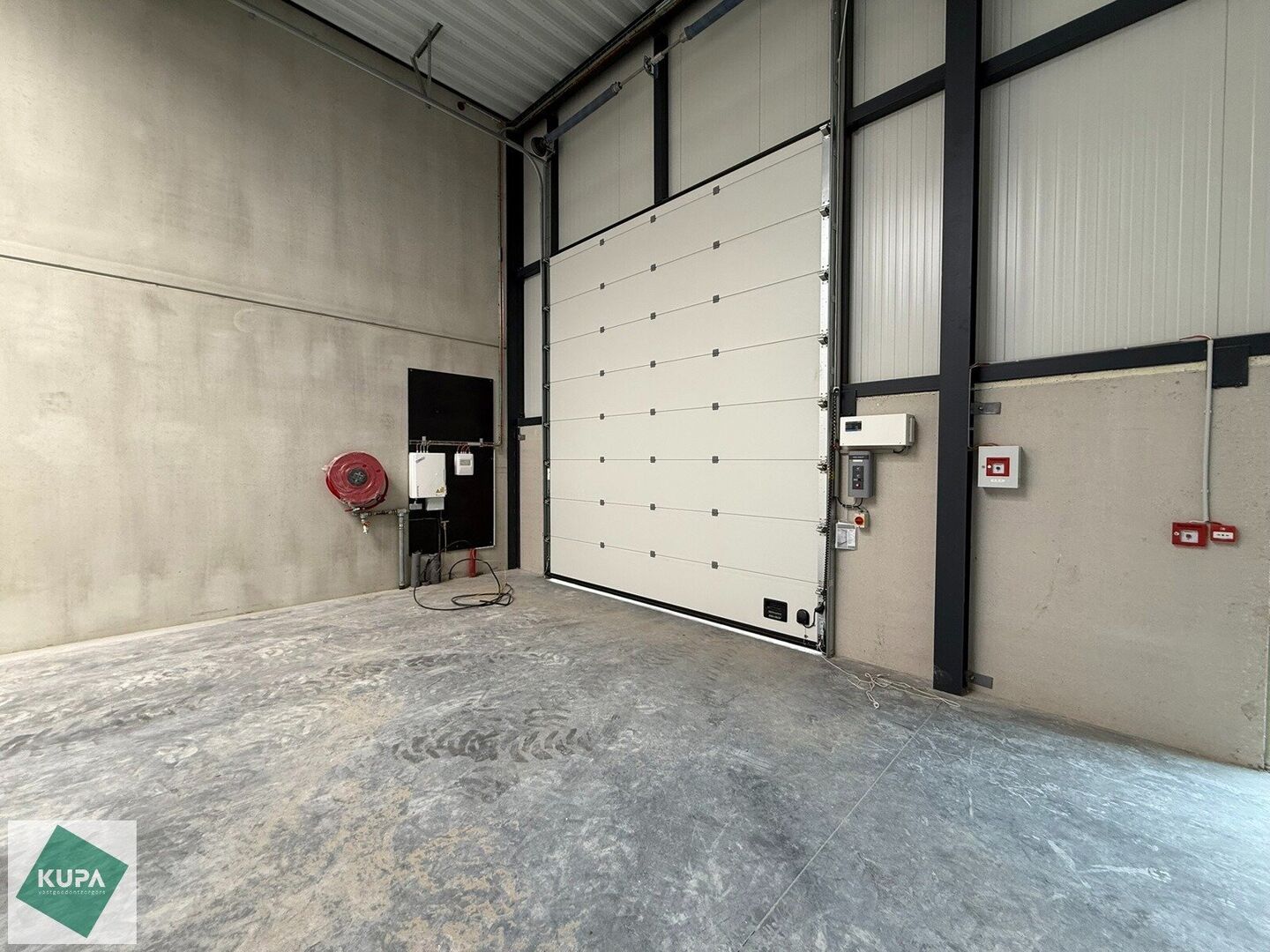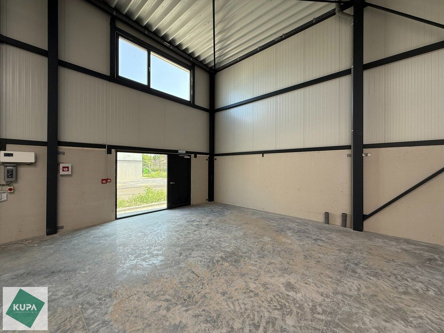 De KMO-unit is kwalitatief afgewerkt en opgebouwd uit een staalstructuur met betonnen plint en geïsoleerde sandwichpanelen. Dankzij de grote raampartijen geniet het magazijn van veel natuurlijk daglicht, wat bovendien de mogelijkheid biedt om een kantoorruimte te integreren. Verder is het magazijn uitgerust met een automatische sectionale poort, een steeldeckdak met lichtstraat en rookluik + brandhaspel, en een duurzame polybetonvloer met een draagkracht van 2,5 ton/m². De vrije hoogte bedraagt meer dan 6 meter.