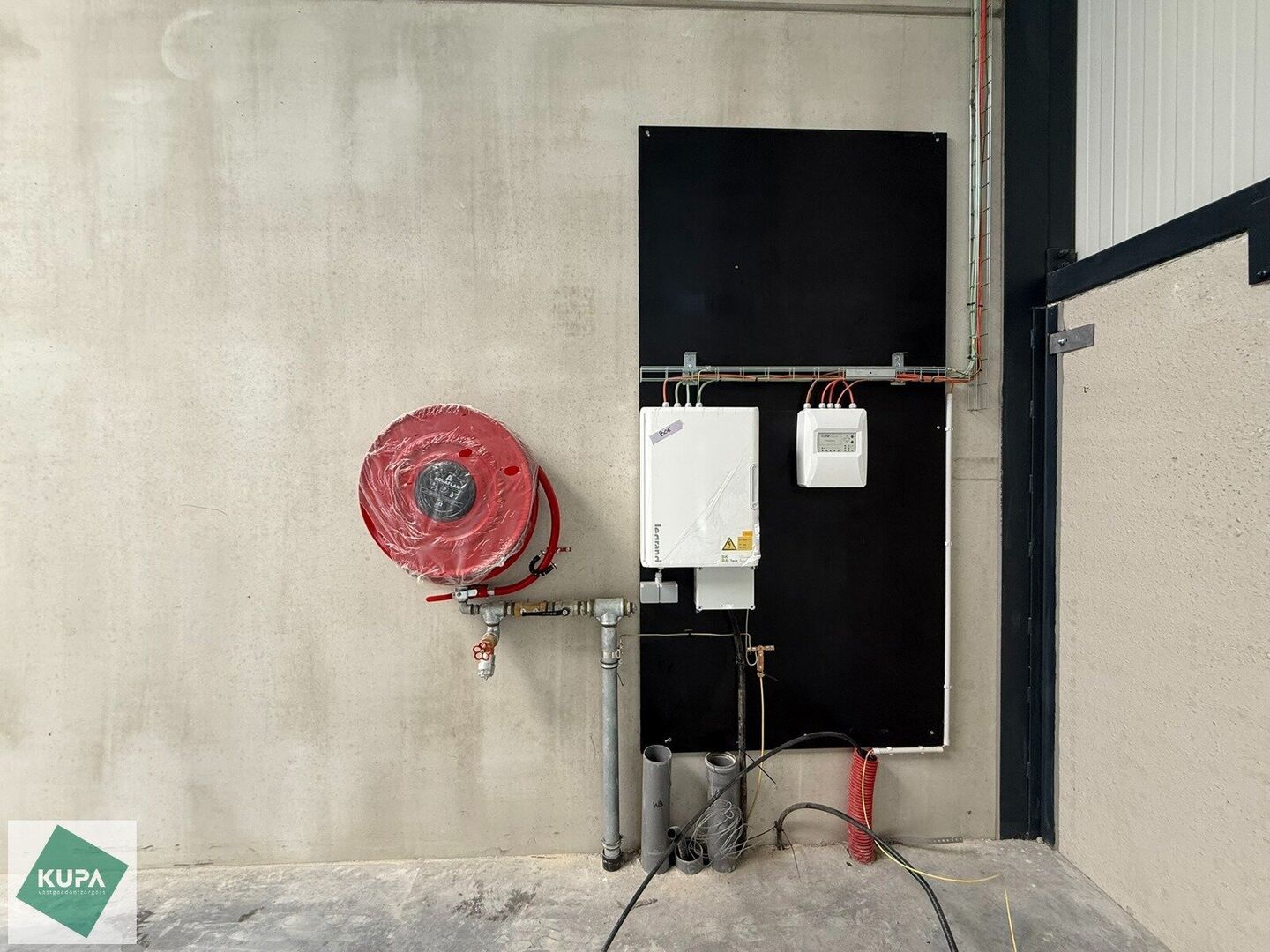 Er is verlichting voorzien aan de buitenzijde ter hoogte van de poort, zodat de toegangszone als de parkeerplaatsen goed verlicht zijn. Binnen in de loods voorziet de verhuurder verlichting en een aantal stopcontacten. Elektriciteit en water zijn individueel aangesloten.