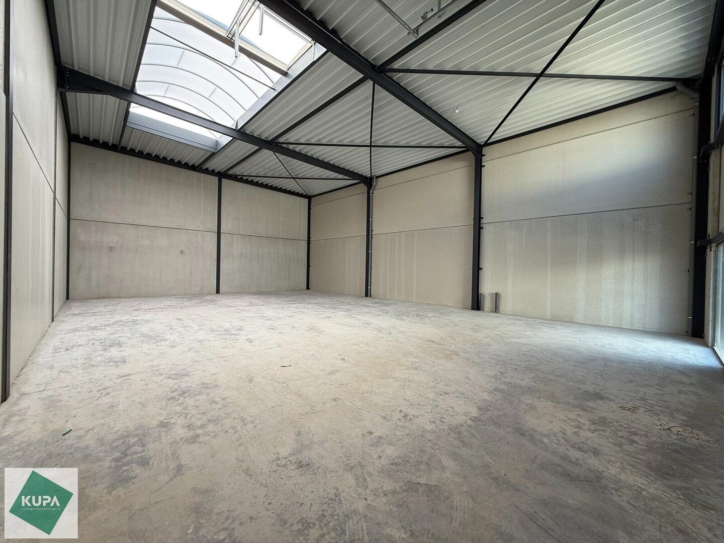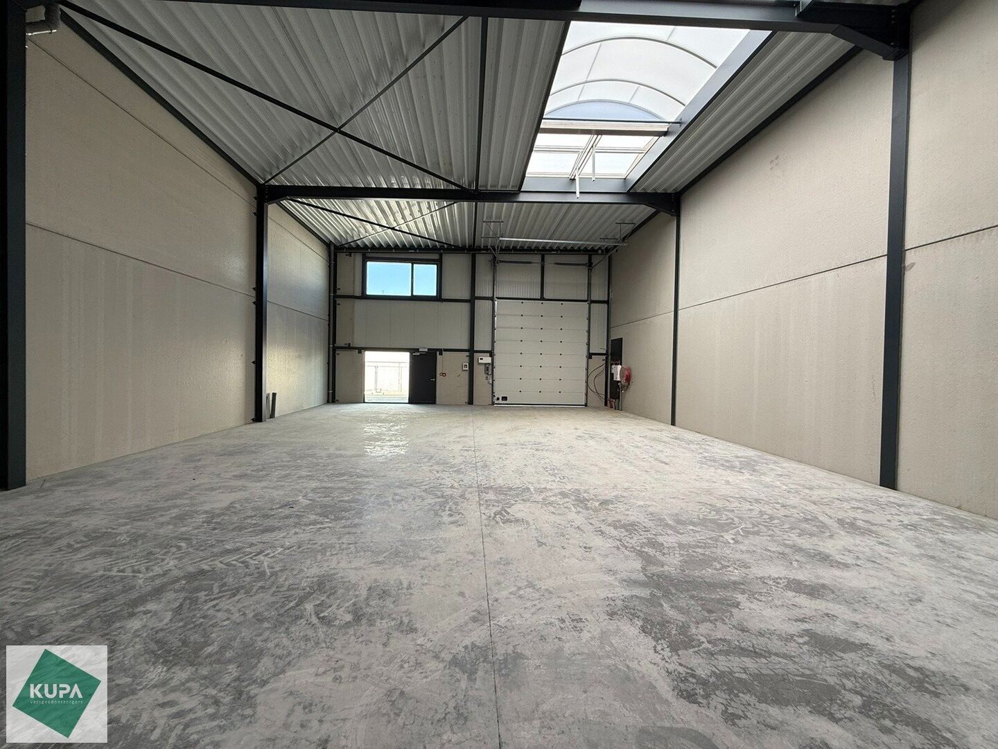 De KMO-unit is kwalitatief afgewerkt en opgebouwd uit een staalstructuur met betonnen plint en geïsoleerde sandwichpanelen. Dankzij de grote raampartijen geniet het magazijn van veel natuurlijk daglicht, wat bovendien de mogelijkheid biedt om een kantoorruimte te integreren. Verder is het magazijn uitgerust met een automatische sectionale poort, een steeldeckdak met lichtstraat en rookluik + brandhaspel, en een duurzame polybetonvloer met een draagkracht van 2,5 ton/m². De vrije hoogte bedraagt meer dan 6 meter.