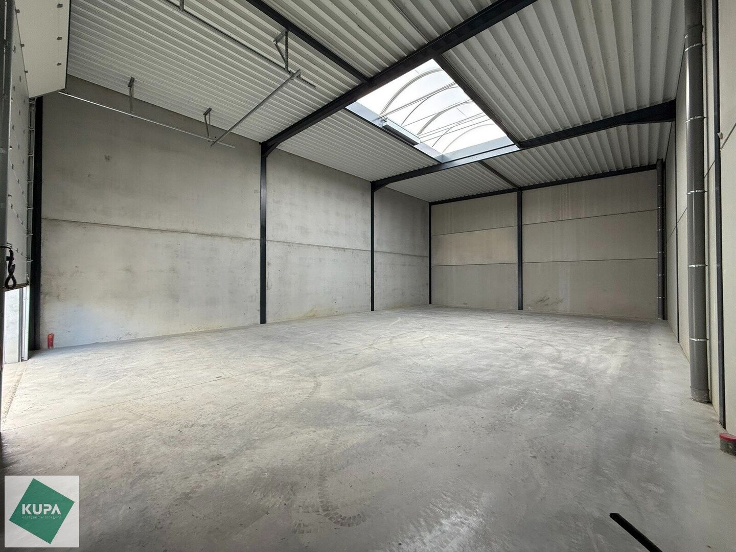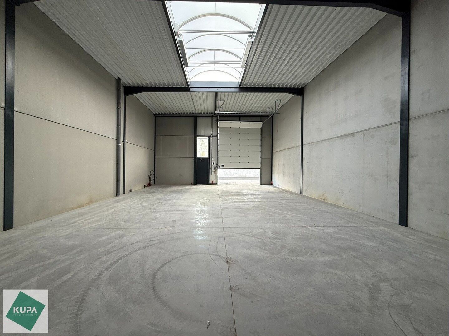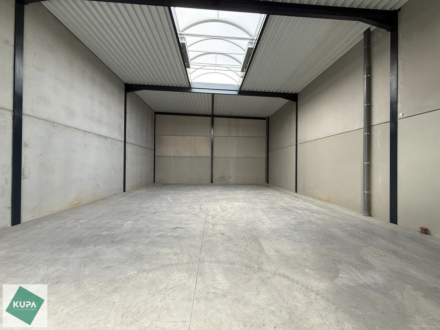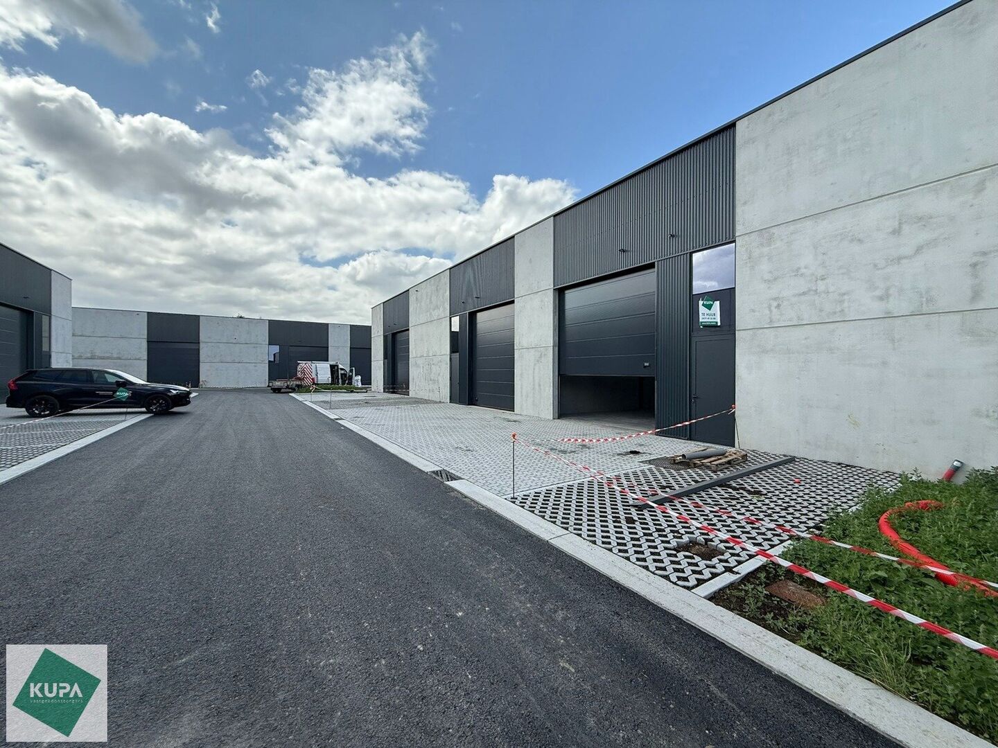 De loods van 198m² heeft een mooie vrije hoogte, is gebouw in een staalstructuur, afgewerkt geïsoleerde voorgevel in beton en sandwichpanelen. Er is een automatische sectionale poort (4m breed), een lichtstraat met rookluik en een duurzame polybetonvloer, verlichting en een aantal stopcontacten.