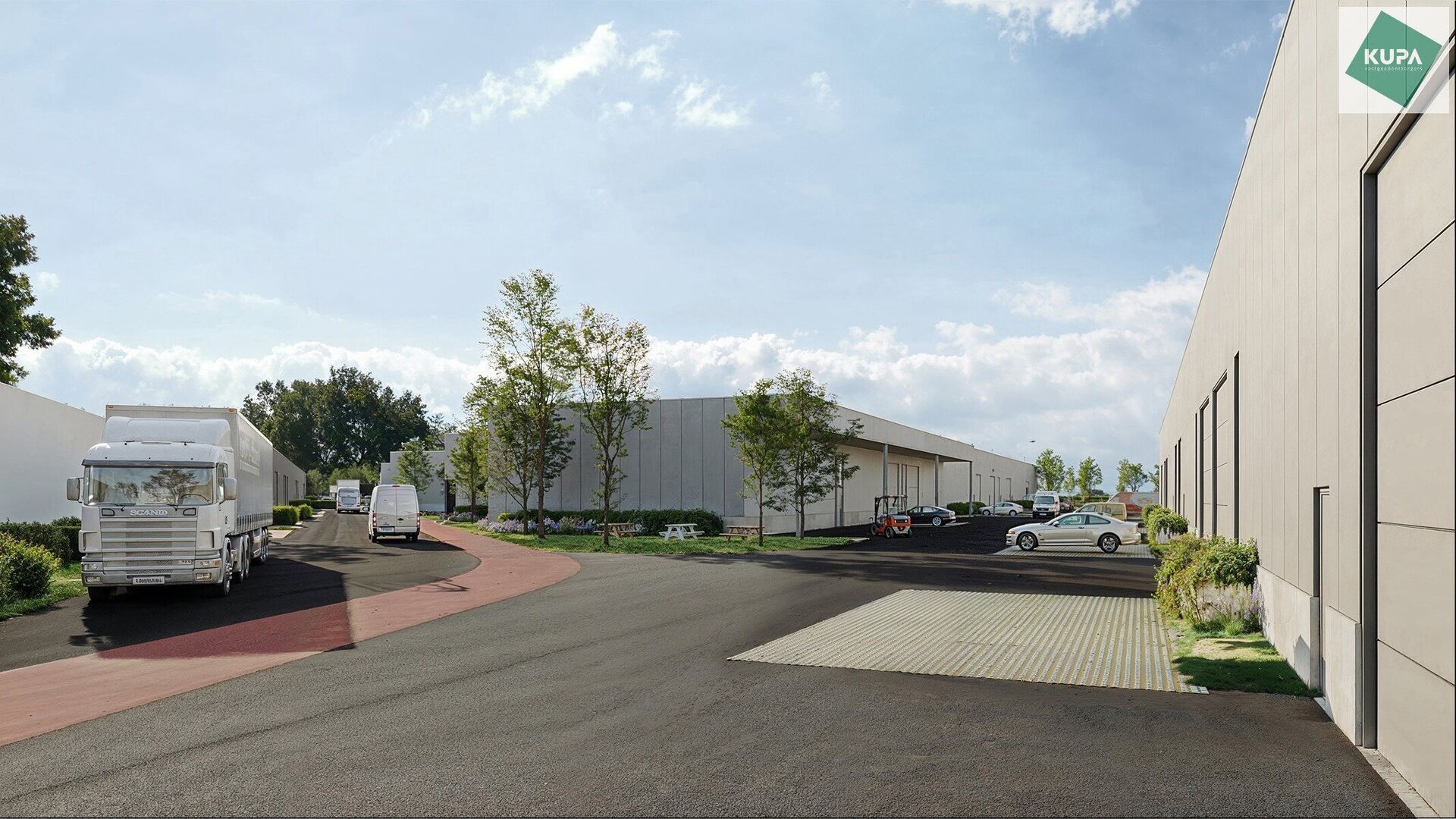 Alle units zijn voorzien van een automatische sectionale poort (4,5 m breed x 4,8 m hoog) en een aparte toegangsdeur. Sommige units beschikken over een raam aan de voorzijde. De loodsen met een vrije hoogte van ongeveer 6 meter, zijn uitgerust met een polybetonvloer, led-verlichting, elektriciteitsvoorzieningen en een toilet met handwasbak. Daarnaast zijn bepaalde units uitgerust met een lichtkoepel. De dakstructuur is geschikt voor het plaatsen van zonnepanelen. Het regenwater wordt opgevangen in een individuele regenwaterput van 10.000 liter per unit. De site biedt voldoende manoeuvreerruimte, met minimaal twee parkeerplaatsen per unit.